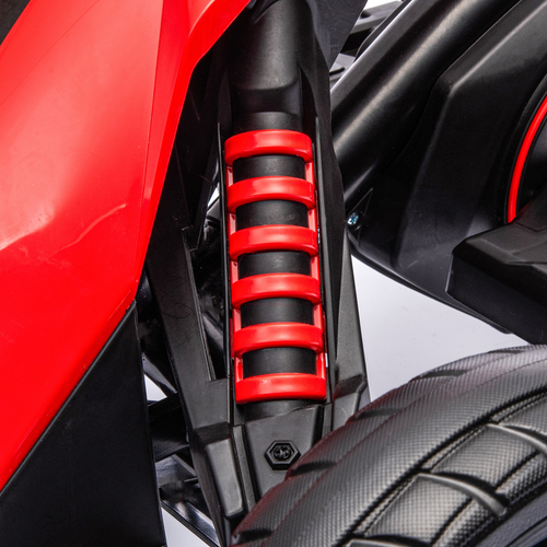 – High and low speeds, ranging from 3-5 km/h – EVA wheels are designed to handle all types of roads – A two-point safety belt and added backrest provide a snug and safe journey – Move forward and reverse for creative exploration – Assembly required- Colour: Red, Black – Material: PP, Metal, EVA – Overall Dimension: 100L x 58W x 58.5Hcm – Seat Dimension: 32W x 16D x 25Hcm – Battery: 12V, 7AH – First charging: 6-8 hours. Regular: 8-12 hours – Run Time: 50 Min – Speed: 3-5 km/h – EVA Wheels: Dia25cm – Weight Capacity: 30kg – Qualification Ages: 3+ years. Recommended Ages: 3-8 years – Qualification: EN71-1-2-3, EN62115 – Item Label: 370-288V70RD – NOTE: Always monitor your children while they are riding