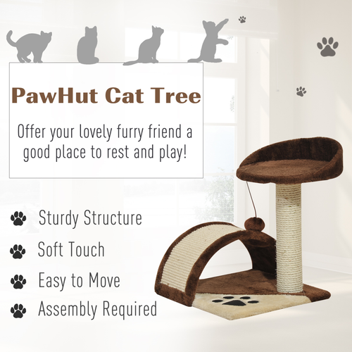 Made of particle board, sisal carpet and plush in strong construction – Lightweight, easy to move – Features a funny ball toy on cat tree for your cat’s entertainment – Sisal cat scratching posts satisfy your cats’ nature of clawing, and protect your furniture from scratching – Elegant brown colour tones go well easily with your home-s existing dcor – Assembly required